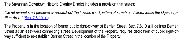 HDBR To Encourage Building That Will Block Berrien Street and Prevent Restoration of the Oglethorpe Plan